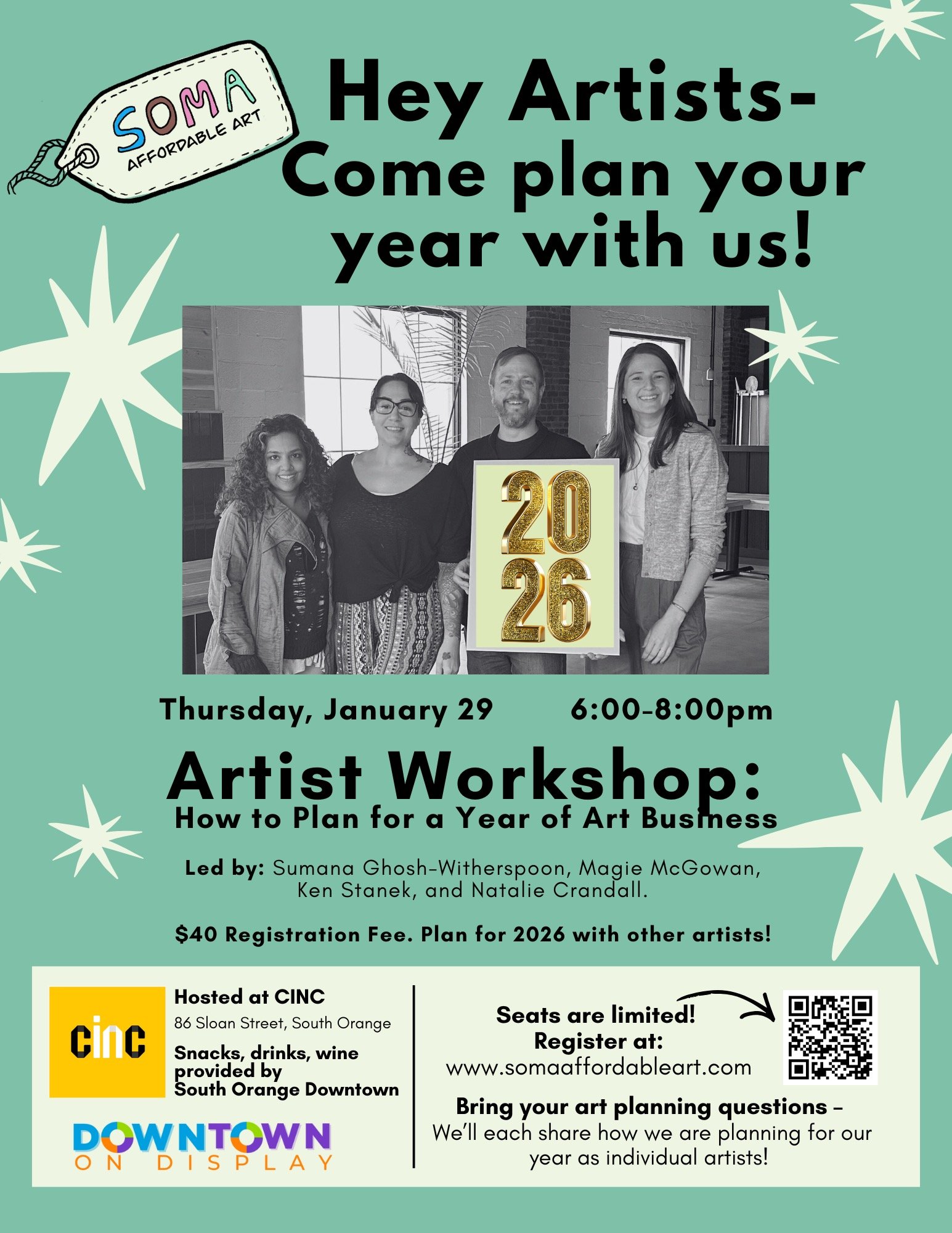 Participants will hear from the organizers of SOMA Affordable Art (Sumana, Magie, Ken, and Natalie) about how they’re each planning for a new year of art in their business.