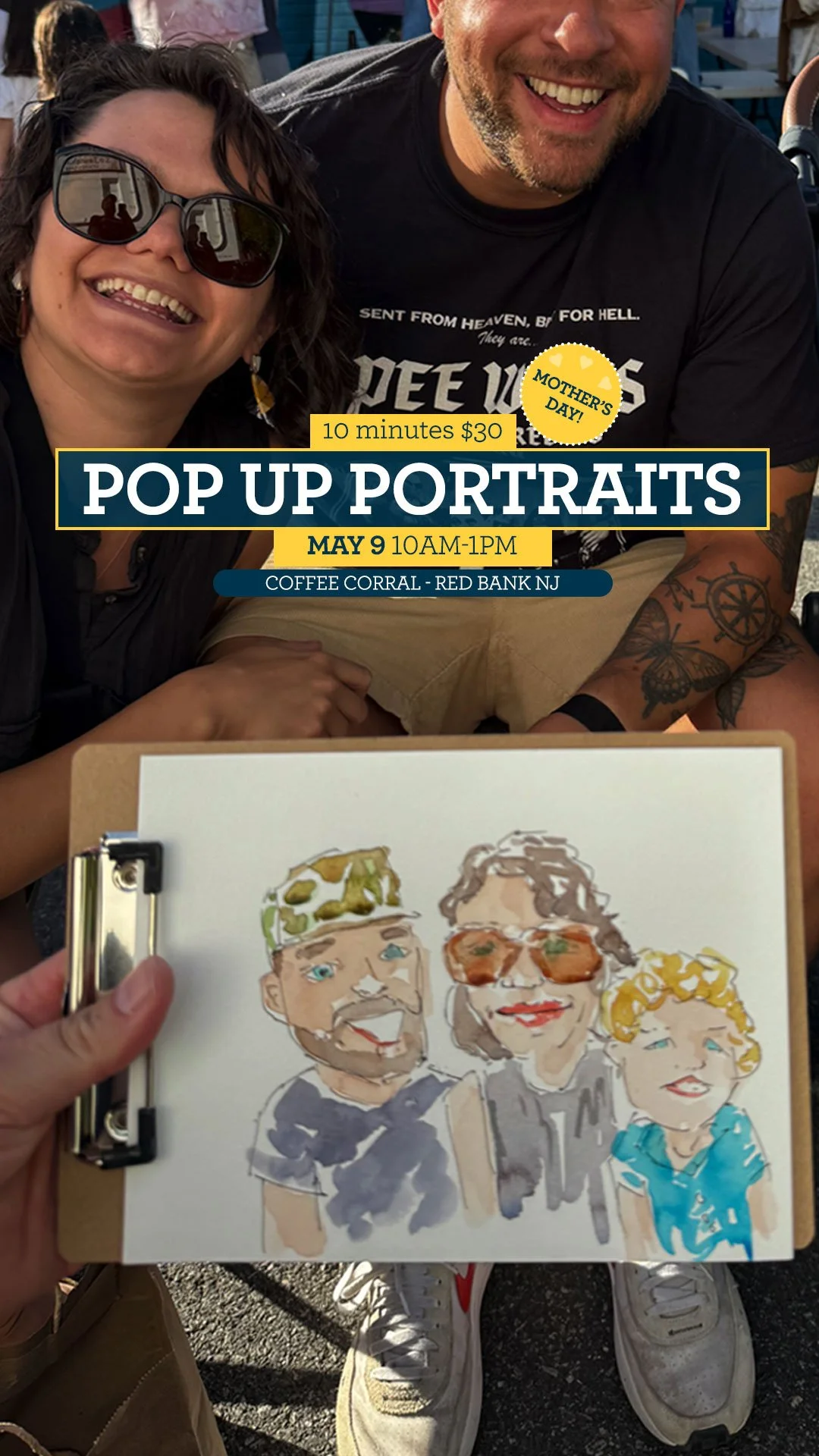 Back to All Events Pop Up Portraits at Coffee Corral for Mother’s Day Saturday, May 9, 2026 10:00 AM 1:00 PM Coffee Corral 177 Drs James Parker Boulevard Red Bank, NJ, 07701 United States (map) Google Calendar ICS Quick portraits for Mother's Day! Come to the Coffee Corral in Red Bank, NJ for a wonderful lineup of events to celebrate Mom, including Pop Up Portraits. Artist Ken Stanek will take 10 minutes to create a one of a kind keepsake. Price of a portrait: $30 Sign up here